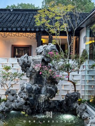 水池邊假山立面效果很重要,把景做出來(lái)的同時(shí),還能拔高整個(gè)空間層次。